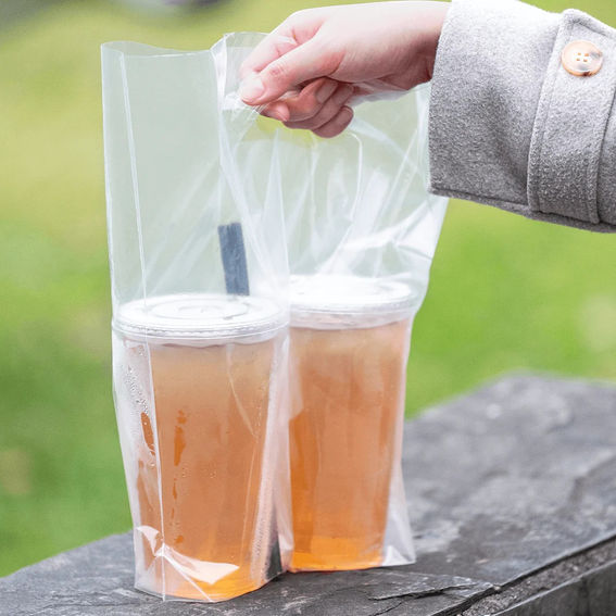 Presentamos el portavasos tipo bolsa Karat® de dos cavidades: la solución definitiva para transportar bebidas con facilidad y estilo. Perfecta para cafeterías, casas de té ó cualquier servicio de bebidas para llevar. Esta bolsa porta bebidas está diseñada para acomodar una amplia gama de tamaños de vasos y envases, desde 12 a 52 onzas. El diseño de la bolsa transparente permite una rápida identificación del contenido.