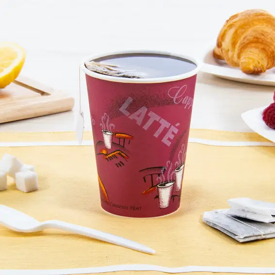 La impresión de fabrica Bistro® puede solicitarse en otras medidas de vaso de papel de bebidas calientes.